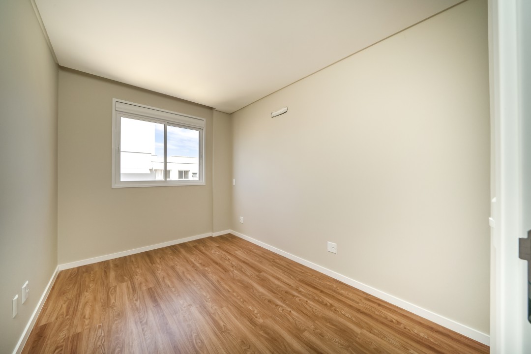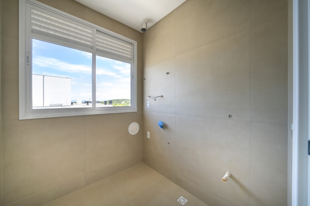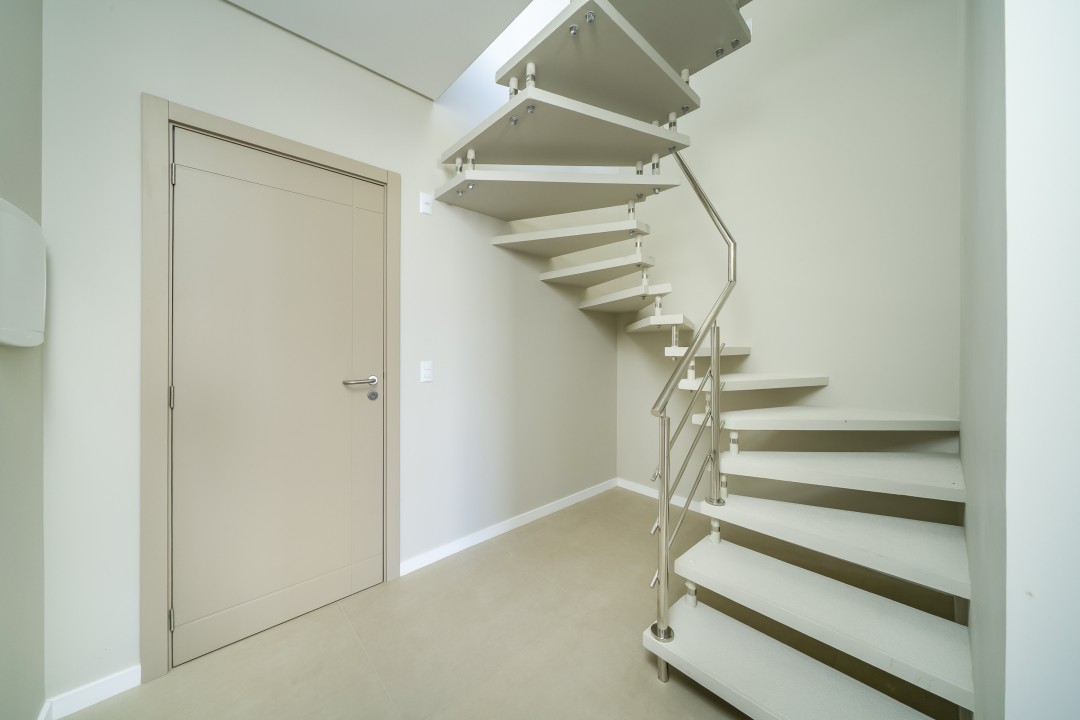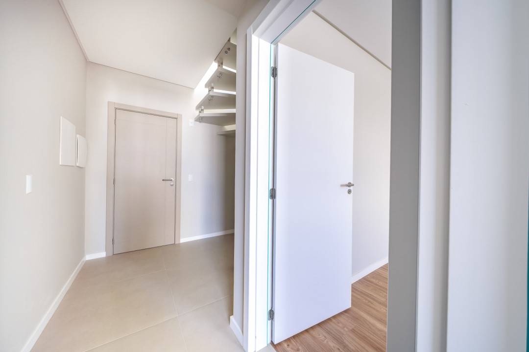 Como persianas integradas, porcelanato 1m x 1m, piso vinílico nas áreas íntimas, etc.