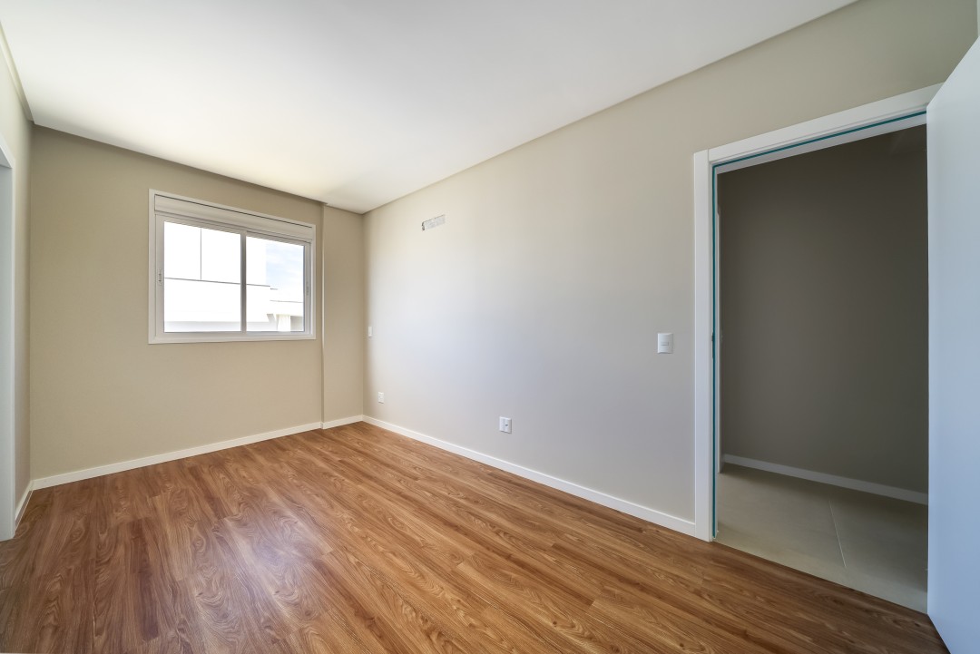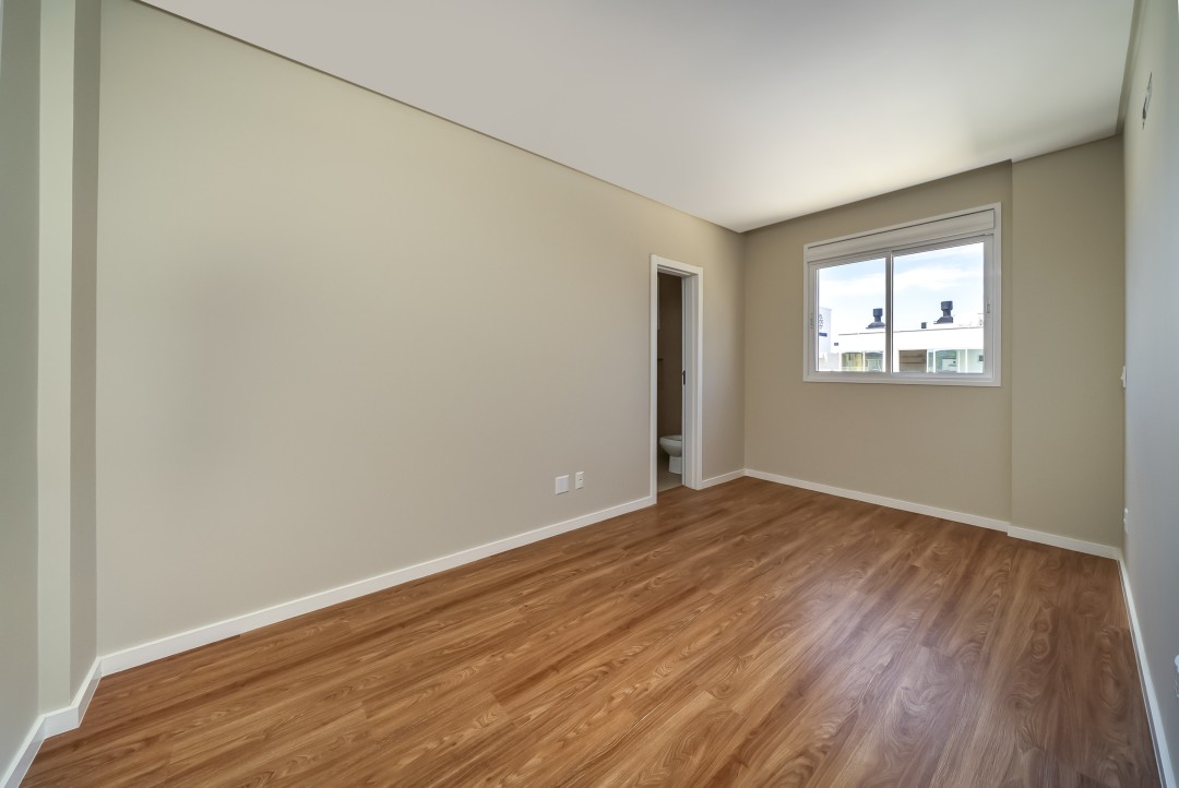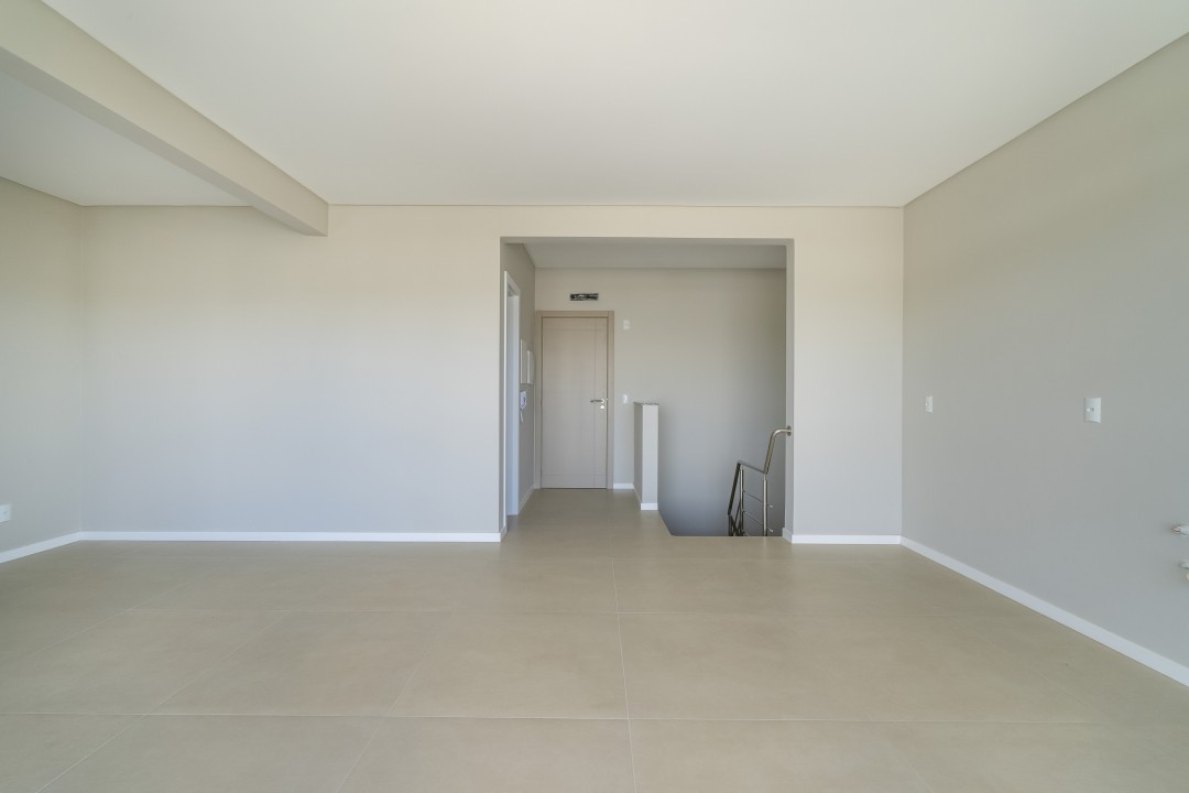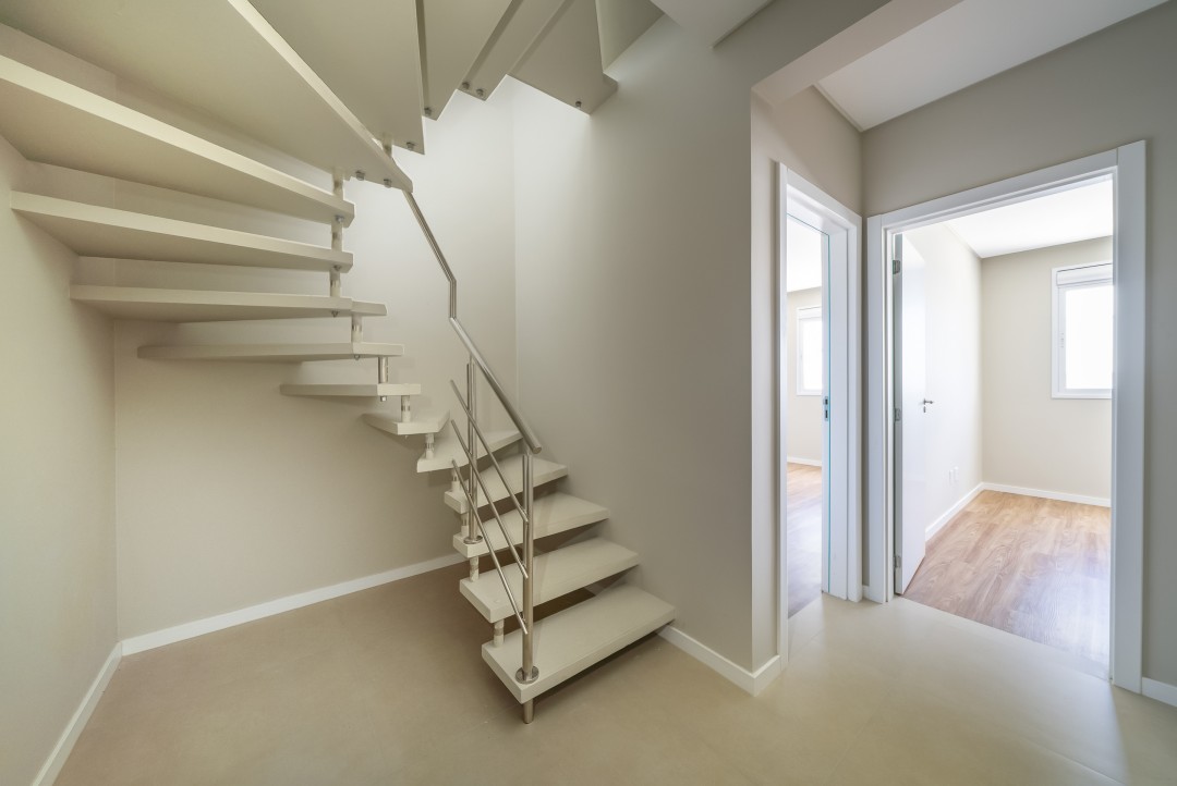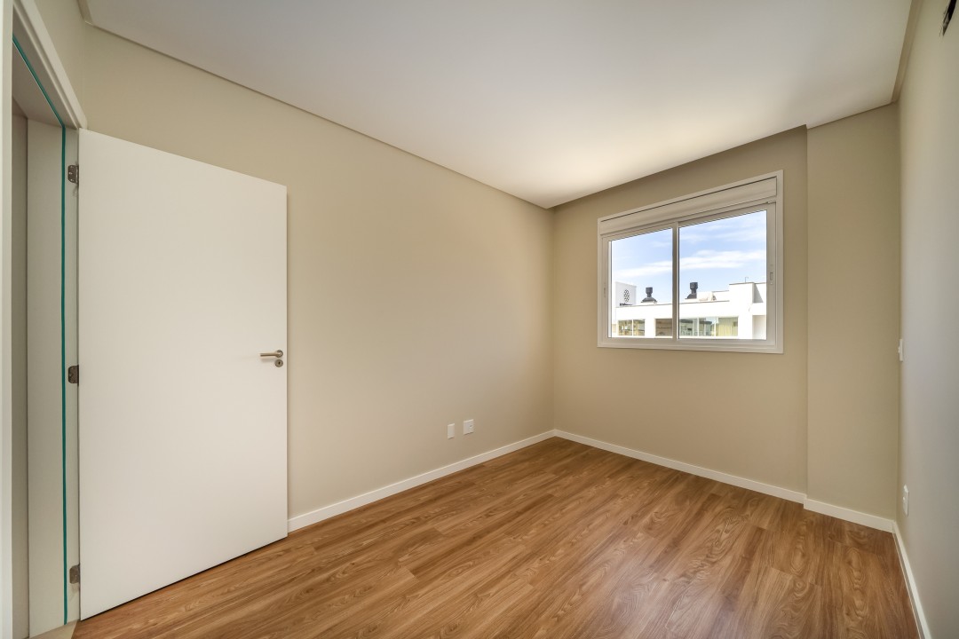 Como persianas integradas, porcelanato 1m x 1m, piso vinílico nas áreas íntimas, etc.