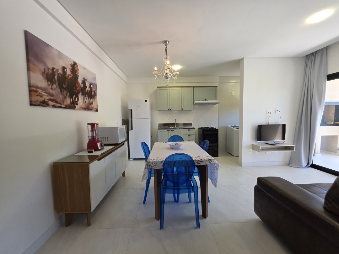 Salas de estar e jantar integradas com tv;