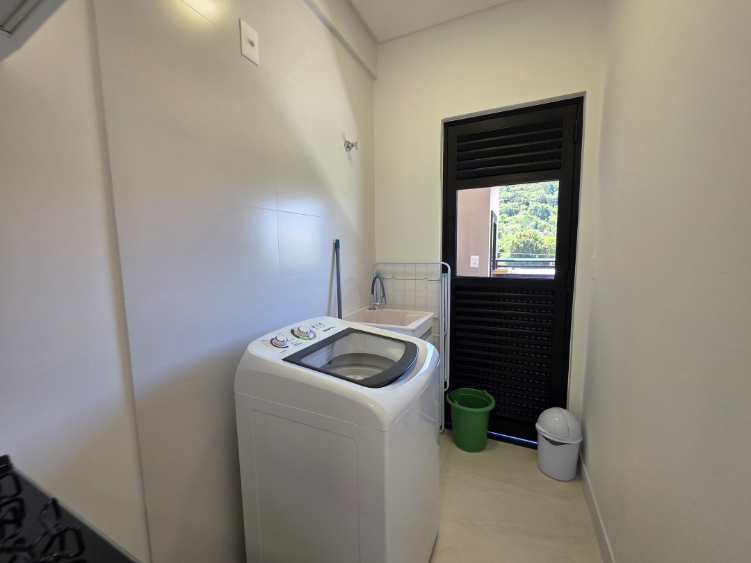 Área de serviço com máquina de lavar roupas;