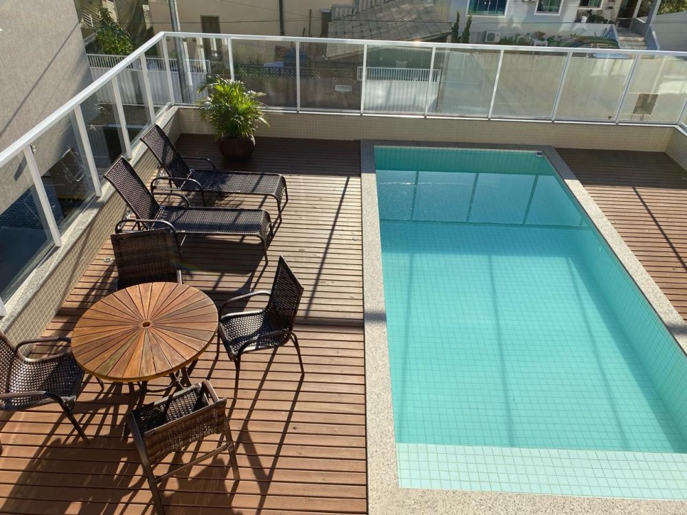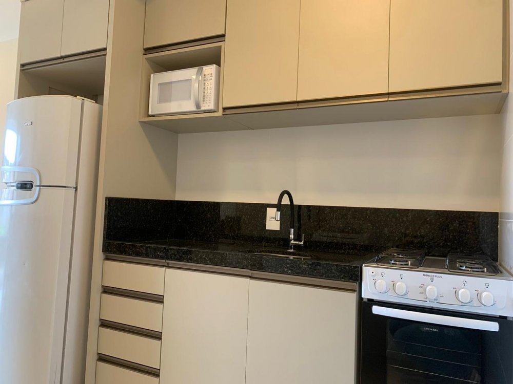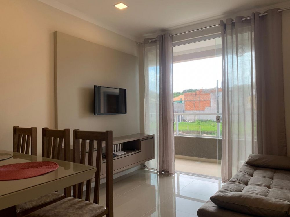 Apartamento mobiliado, com 02 dormitórios, sendo 01 suíte, banheiro social, sala, cozinha, lavanderia, sacada com churrasqueira, duas vagas de garagem, piscina, elevador